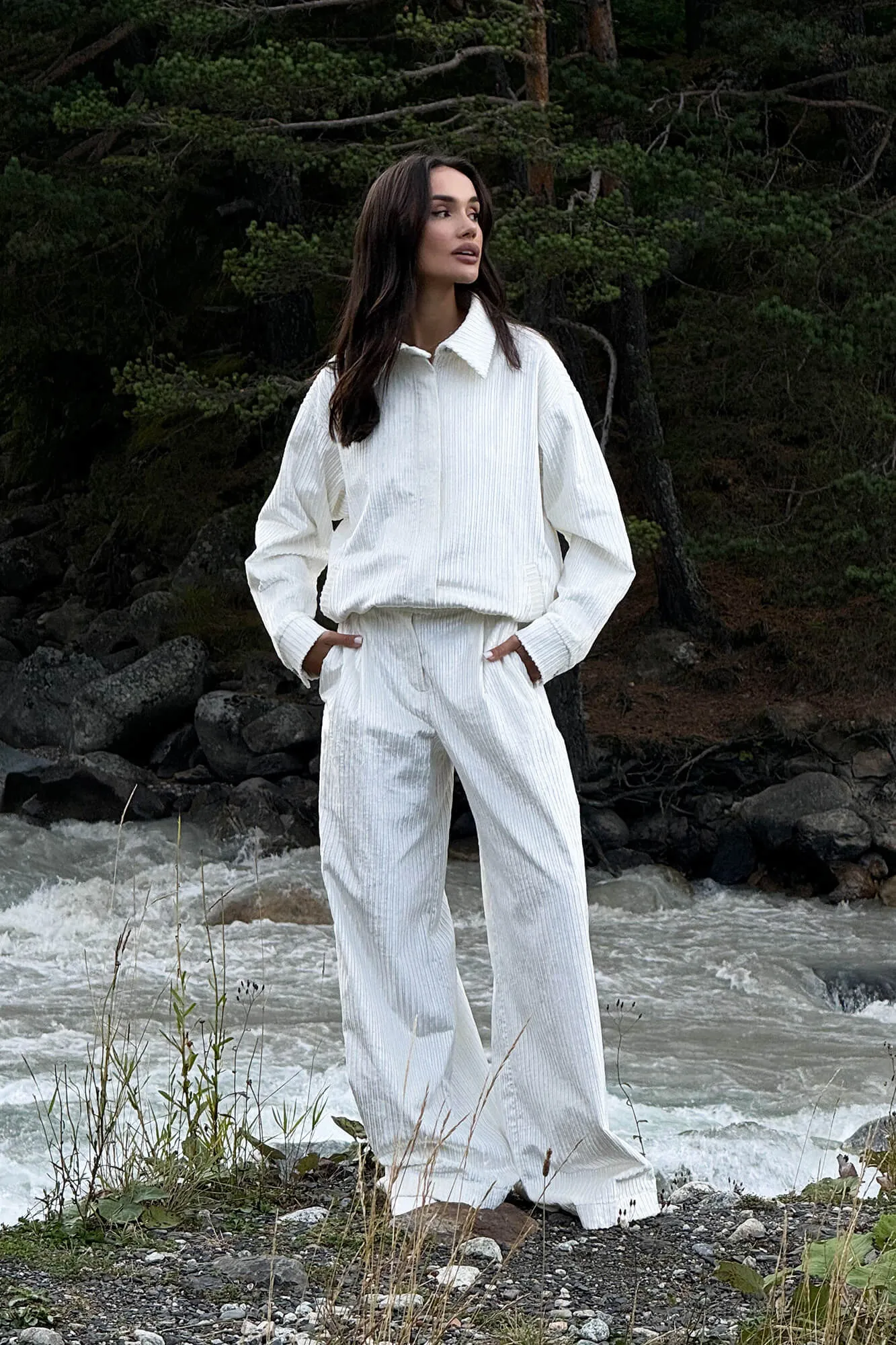 Широкие брюки из вельвета — это стильное и комфортное решение для повседневного и делового гардероба. Брюки выполнены из мягкого и приятного на ощупь вельвета молочно-белого цвета, который добавляет образу фактурности и глубины. Свободный крой обеспечивает удобство движений, создавая элегантный и расслабленный силуэт.