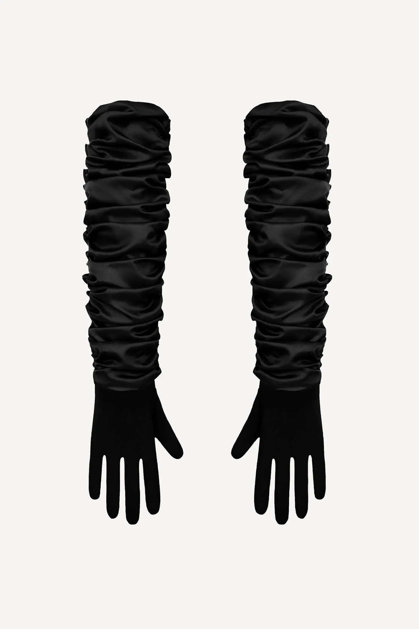 Шёлковые перчатки с драпировкой дополнят ваш вечерний образ, сделав его ещё роскошнее и элегантнее.