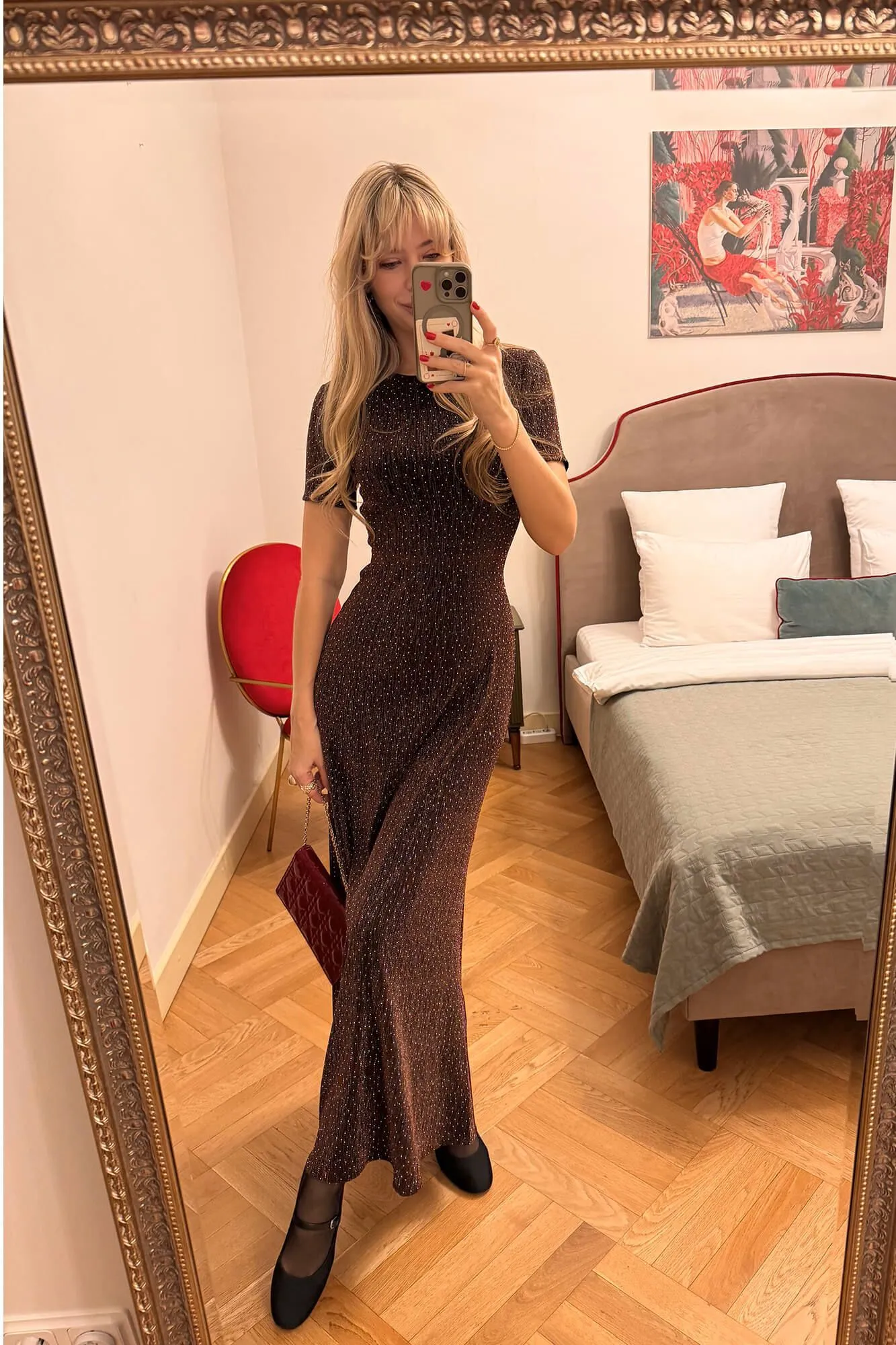 Легкое платье в длине макси из тонкого струящегося трикотажа в шоколадном оттенке. Простая, лаконичная модель подчеркнет все достоинства вашей фигуры и обеспечит комфорт в движении. Стразы ловят свет при каждом шаге, словно случайные искры в темноте.