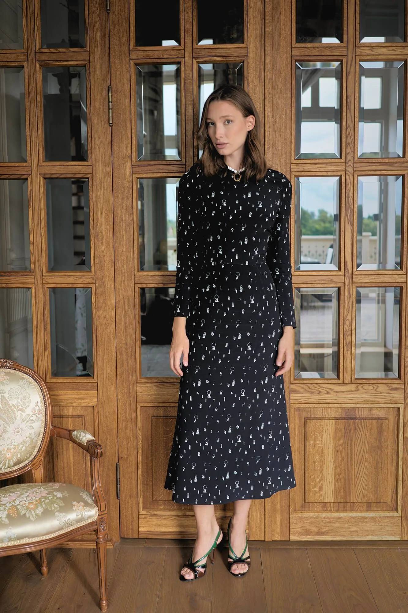 Платье миди с длинным рукавом и юбкой «годе»