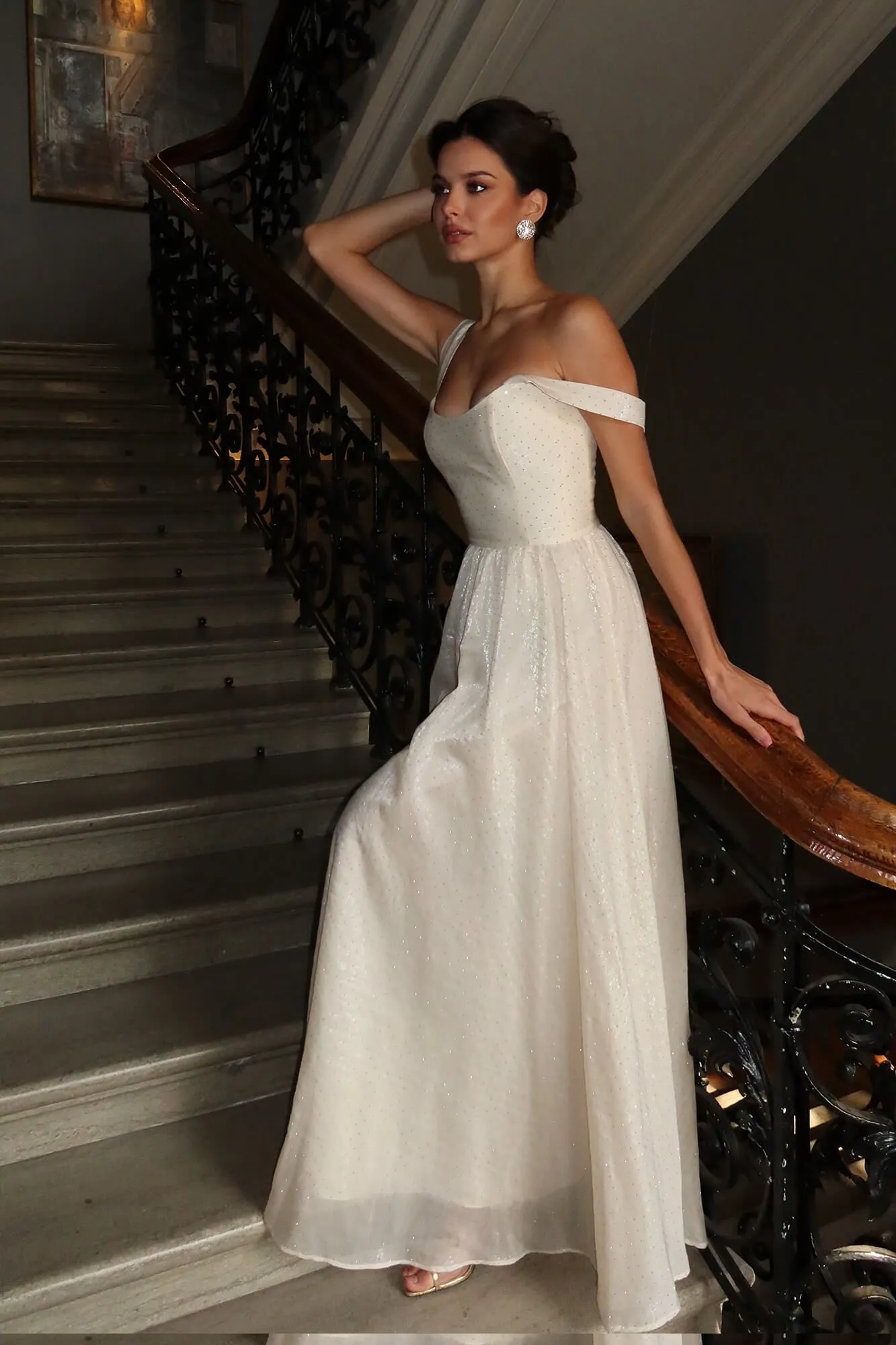 Платье-миди в нежном пудровом оттенке, с широкими бретелями и пышной летящей юбкой. Сверкающая ткань, расшитая стразами, выглядит эффектно и роскошно. Глубокий фигурный вырез акцентирует линию декольте и ключицы. Благодаря приталенному крою модель идеально садится по фигуре, подчеркивает изгибы и делает ваш образ еще более женственным и соблазнительным.